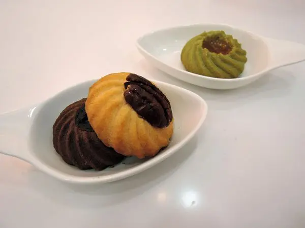 店家會將客製化的口味分裝在白色碟子中,讓客人能品嚐剛出爐、熱呼呼的曲奇口感,