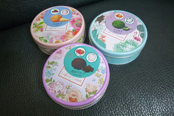 鐵盒的底下也有各種口味的成份標示、廠商資訊和保存期限,曲奇餅保存期限可達3、4個月,