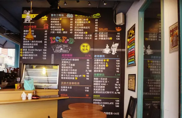 一到LOCOFOOD感覺店面好小,當時我只站在點餐這邊(前面)不知道原來這整間店都是他們家的。前面開放式的坐位只有三處,到了那邊已有二個位置被坐走,我還很慶興有最後一個位置。