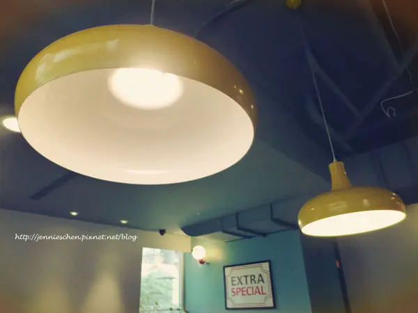 另一面有小蜜蜂的掛燈,這面牆刻意塗上同樣是Tiffany的藍,讓窗戶的光透進來,增添一些溫暖,也帶有居家的鄉村風格。