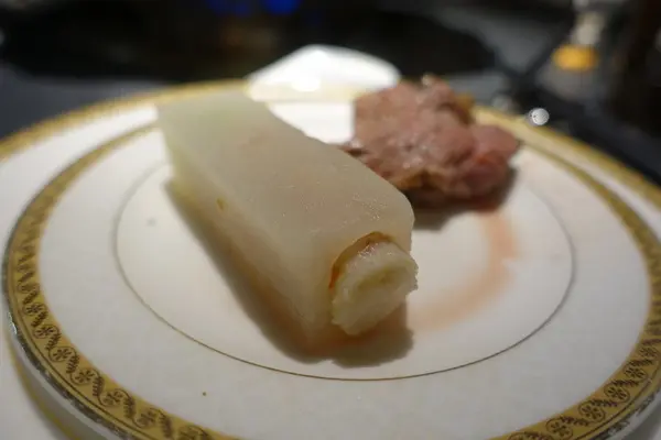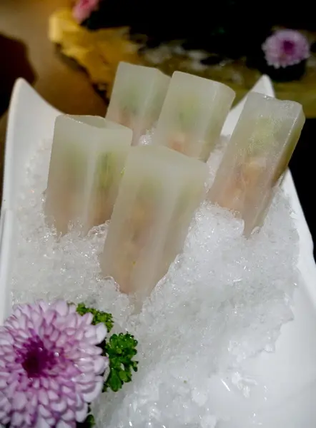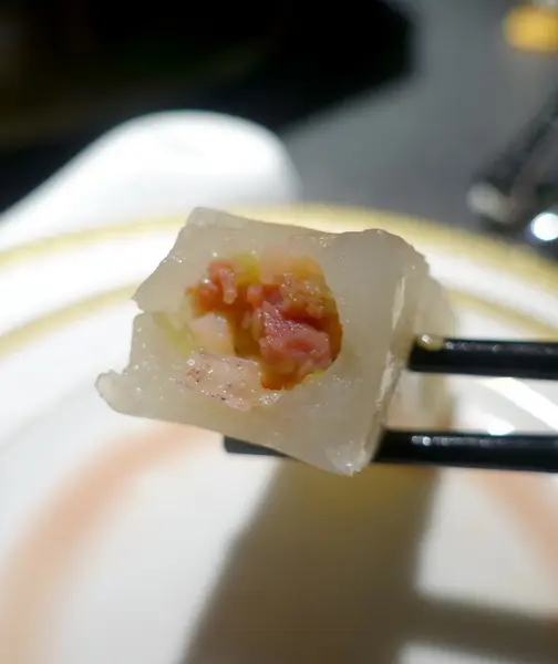 鑲嵌穿搭入半透明的多汁蘿蔔裡