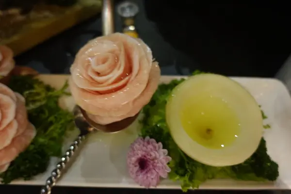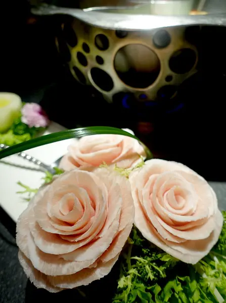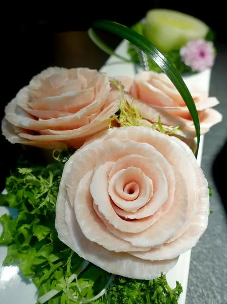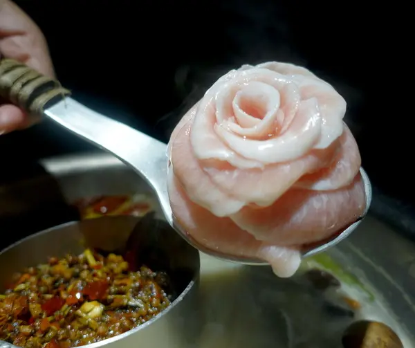 每一朵花都用了 14 ~ 16 片的豬後頸肉