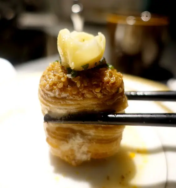 淋上以醬油為主的甜辣佐料..以白芝麻提香