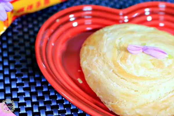 外皮一圈圈的紋路很像千層酥,如紙一般薄、香酥易碎,