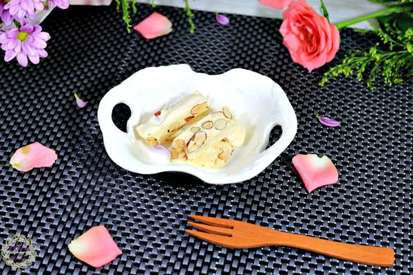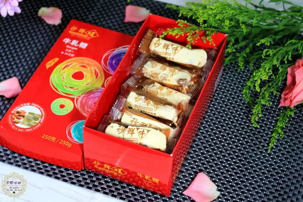 一口咬下,有著濃濃奶香的牛軋糖,甜度自然是比上面兩款點心要高,