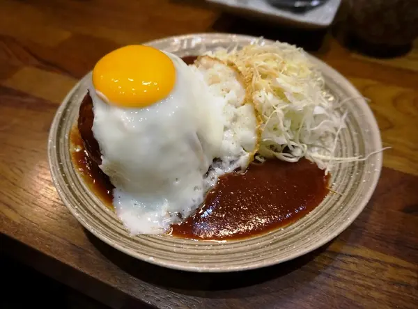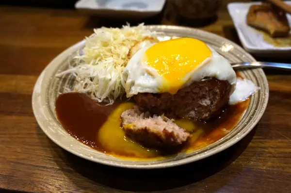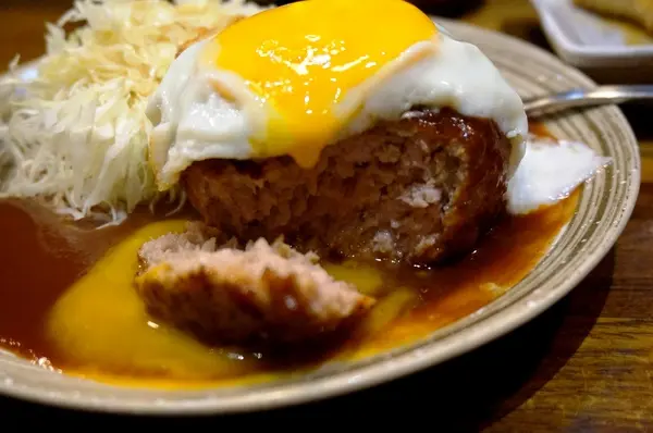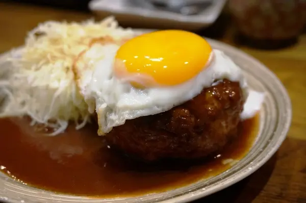 把半熟蛋黃混和跟漢堡肉一起吃最好吃~