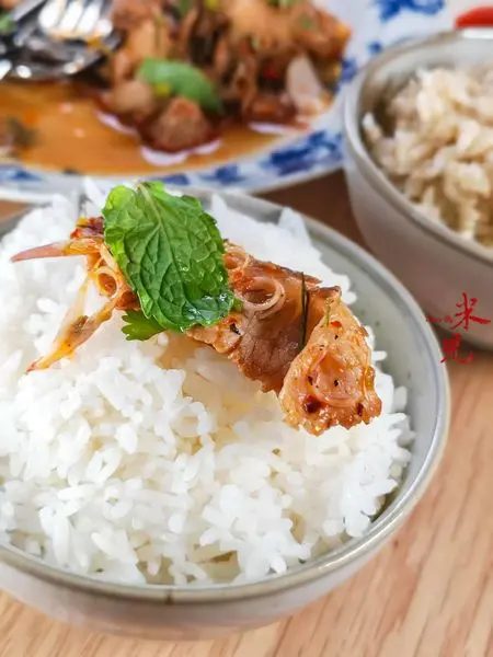 這裡的飯分成香米和糙米,都是要一碗一碗點的,每碗60大洋,相當貴氣。不過這裡的糙米飯顛覆了我對糙米飯的印象,香氣足,口感軟Q,不會有太多纖維感,讓本來極討厭糙米的我愛上糙米飯。