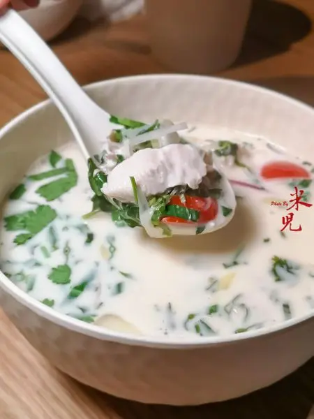 椰漿雞湯,480大洋。這是二訪時六人合菜中的其中一道。因為一起用餐的有不吃辣的小朋友,服務人員說這湯可以做成不辣的。整個濃度和風味都是可圈可點的一道湯品,但真的還是要有點辣才好喝啊~~