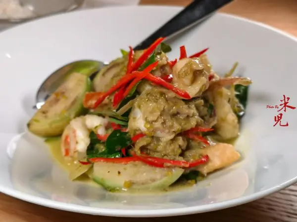因為強調不因台灣人的口味而作調整,所以米兒兩次用餐吃到的好幾道菜色辣度都很高,像是青木瓜沙拉、綠咖哩炒海鮮、檸檬魚.....等等,那個辣度對我來說實在是辣到覺得舌頭痛,所以吃個幾口我就舉白旗了。