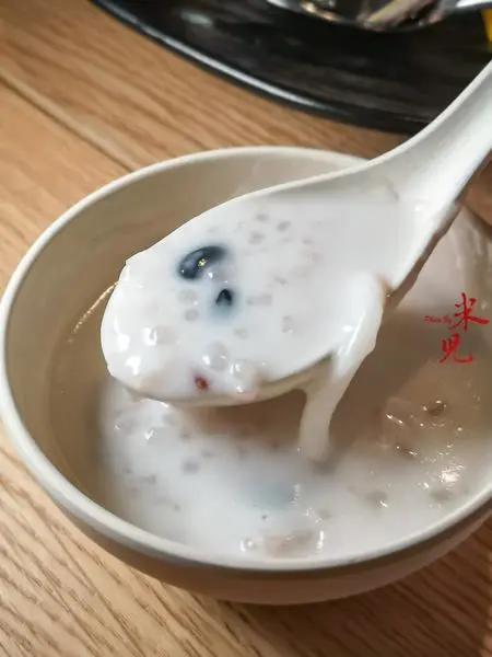 椰汁西米黑豆甜湯,180大洋。這是二訪時六人合菜中的甜點。椰汁很濃,但是吃起來也是偏鹹,不太像甜點,微溫的溫度讓西米吃起來軟糊糊的,個人不太喜歡,最後幾乎沒有人吃完。