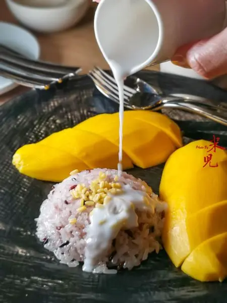 店家招待了芒果糯米,320大洋。糯米煮得不錯,但芒果應該是進口的,吃起來有點硬,椰漿調得很濃但鹹度過高,吃起來有點膩口。