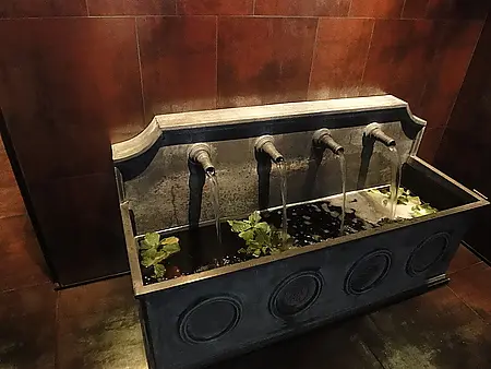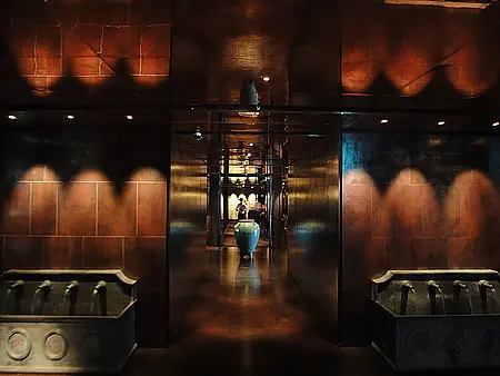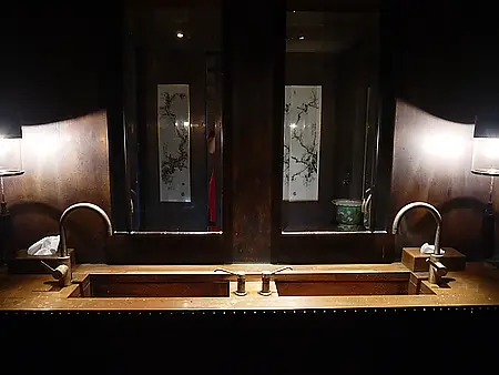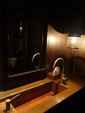 廁所進去讓我摸索了一下~~因為整間都是妨古的金色古銅材質