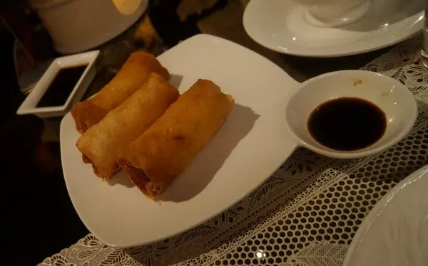 賽螃蟹春捲 ,春捲皮包裹著豆腐和蟹肉,外皮炸的超級酥脆,一上桌馬上吃超級燙口