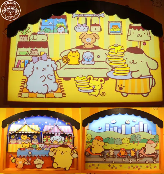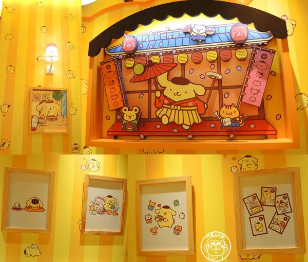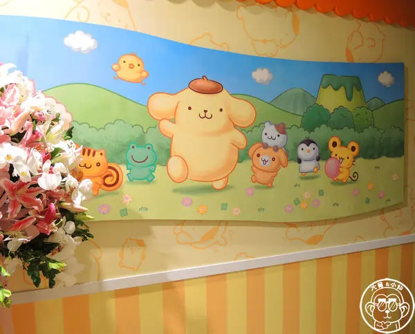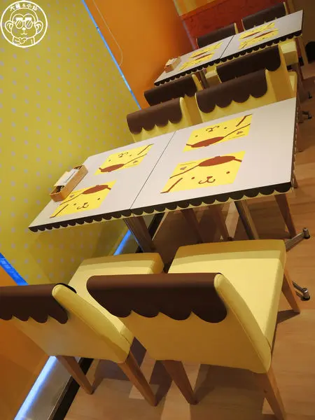中段右邊的椅子做成布丁甜點造型,牆上的畫框是布丁狗和他的朋友們要去開派對