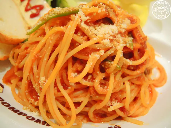 茄汁義大利麵裡面還有不少塊的培根,醬汁因為我拍照的關係有點冷掉了