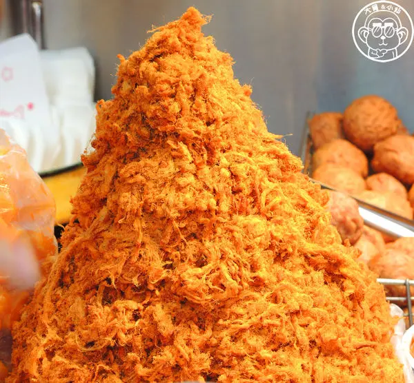 堆成小山的豬肉脯和炸過的鴨蛋黃是蛋黃芋餅的好夥伴