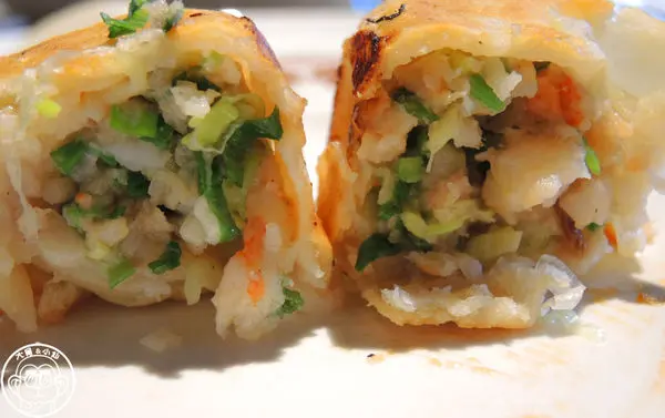 微厚的餅皮煎到有脆口感,裡面超級豐富
