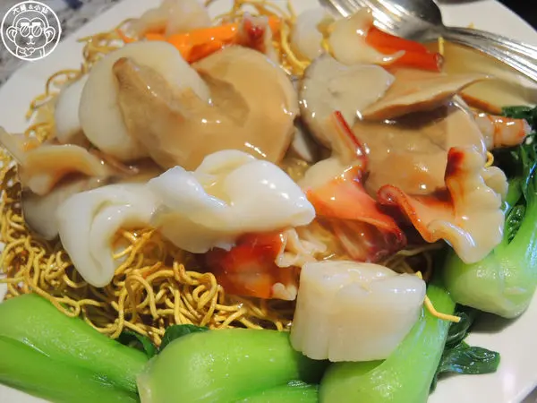 浸過芡汁的炒麵變軟仍帶有脆度,干貝和花枝等大塊海鮮皆很鮮甜