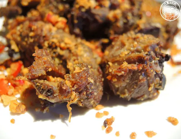 除了有不意外的蔥段,還有蝦泥肉末,鮮甜帶點辛辣,很好吃呦!