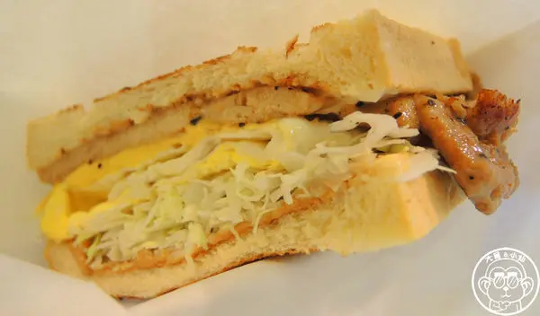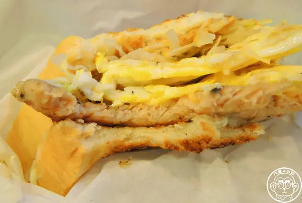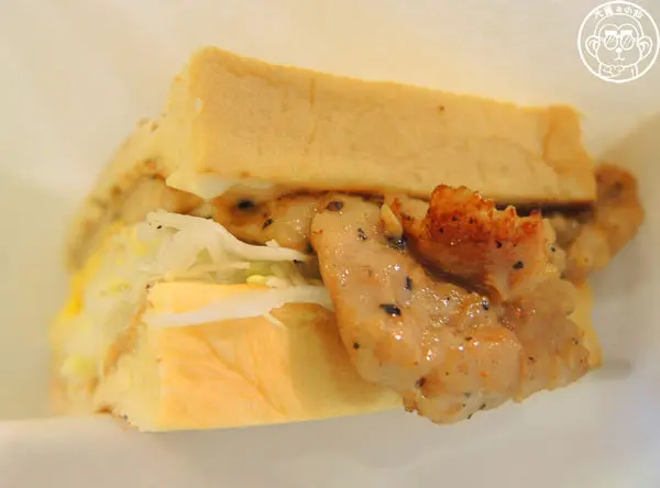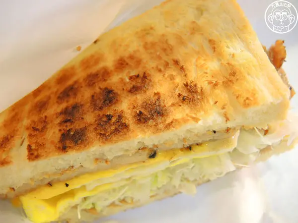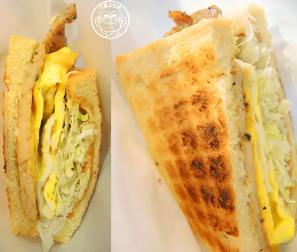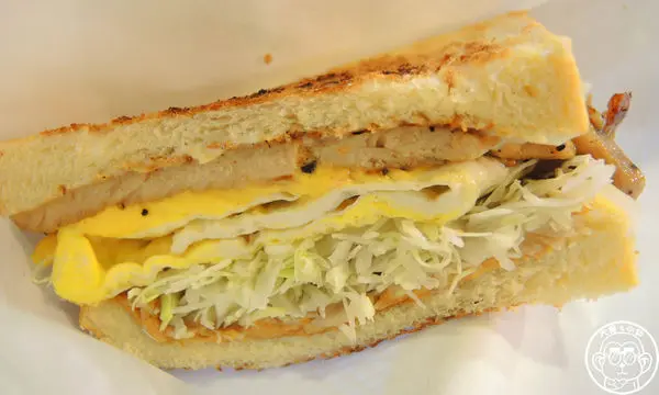 看看這誘人剖面,高麗菜絲、有厚度的全熟蛋、融化牽絲的起司與里肌肉,很有分量