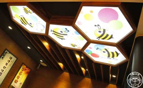 有時尚的內用區,天花板佈滿蜜蜂LOGO
