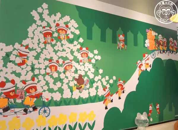 餐廳內四處都看得到小熊們的蹤跡,電視螢幕播放著動畫