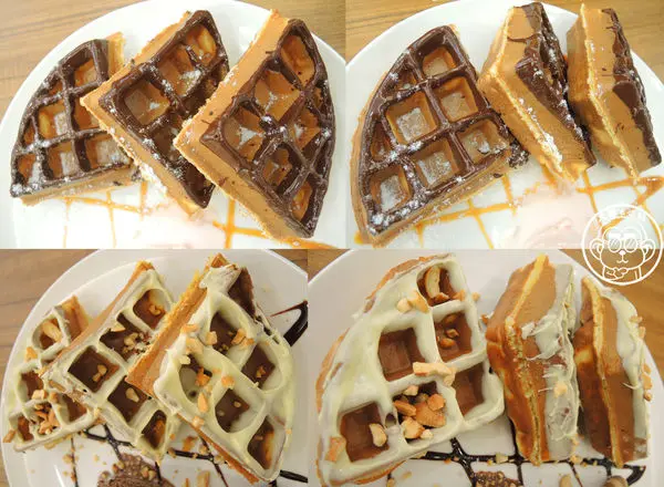 香蕉巧克力冰淇淋鬆餅(190元)、牛奶糖白巧克力冰淇淋鬆餅(190元)