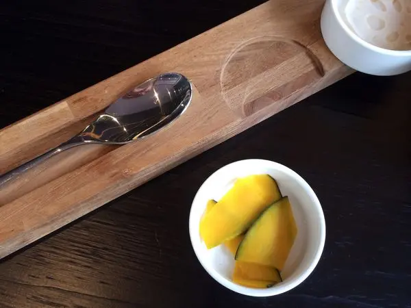 很特別的器皿設計,左邊還有放置餐具的挖口 -