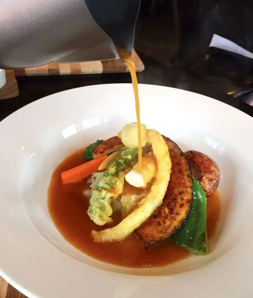 湯蔬菜咖哩的水果味和牛肉咖哩比較之下突出許多,