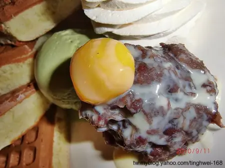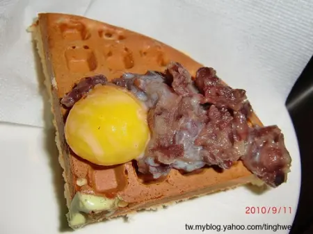餡料搭配熱熱的鬆餅一起吃還挺好吃的~