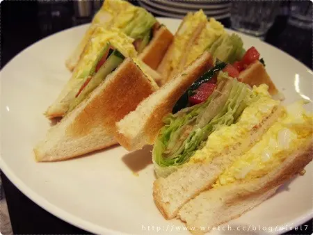 蛋沙拉三明治(120),店內提供唯一蛋奶素的三明治,兩層蛋沙拉加上生菜組合,怕味道太清淡可以加點鹽或胡椒提味。