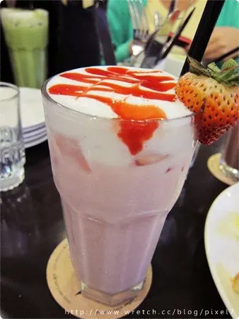 我點的冰草莓歐蕾(130),不太酸但略甜,我覺得比較普通,但朋友非常愛,份量不小。
