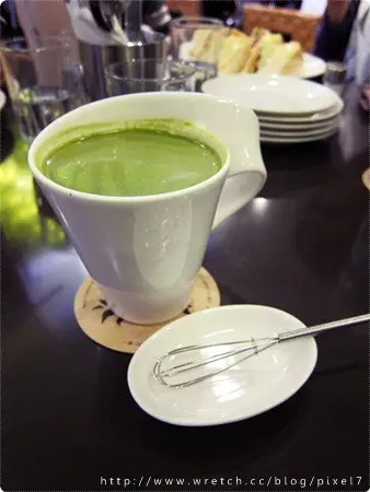 熱抹茶歐蕾(130),據說熱的口味比較剛好一點,附上的小攪拌器非常可愛!