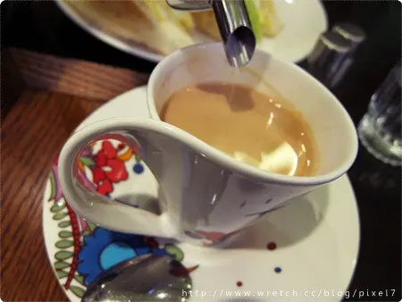 紅茶歐蕾,香橙口味(150),一整壺上桌,可自己添加糖,附帶一提我覺得咖啡弄的杯子很有趣。