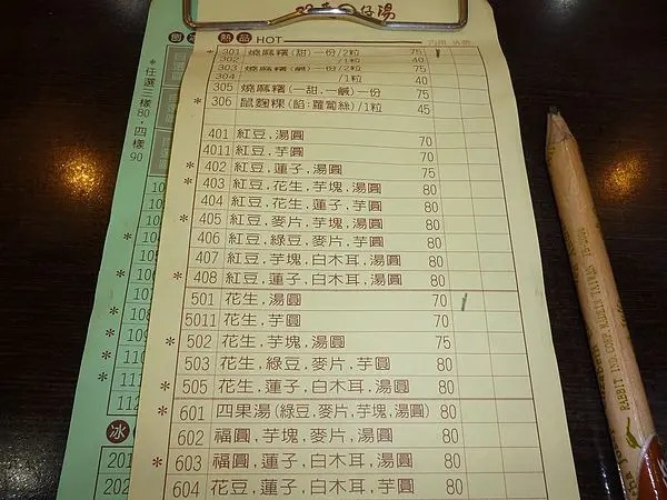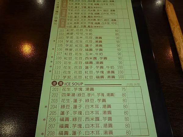 這間店以台式古早味甜點小吃著名,基於季節需要分為冷熱兩種,不過我仔細端詳價目,我發現價格不太便宜,幾乎從75元起跳,比較吸引我的點心當然是燒麻糬,所以我點了甜,鹹各一份的燒麻糬.以及加了芋塊和湯圓的花生湯.