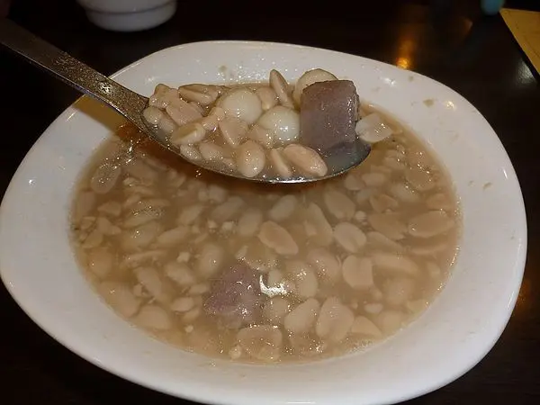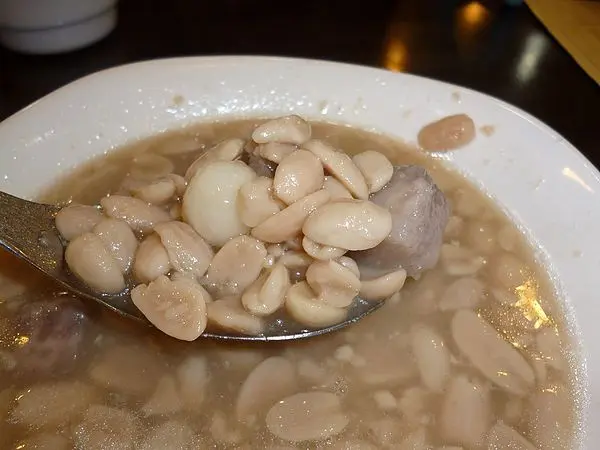 吃完燒麻糬我還意猶未盡,所以我又點了一道熱甜湯,是花生湯加芋頭塊和湯圓,這道甜湯裡面充滿白色軟軟的花生顆粒,芋頭塊和湯圓略少一點,尤其湯圓只見白湯圓,沒有看到紅湯圓.吃起來的口感,花生風味很足夠,顆粒相當軟綿,湯汁甜度上略甜一點,但我個人覺得花生湯就是要甜一點才好吃.
