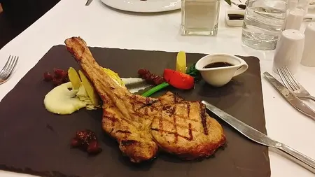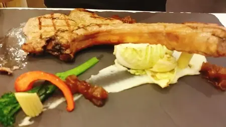 《碳烤戰斧豬排佐黑糖蘋果醬汁》