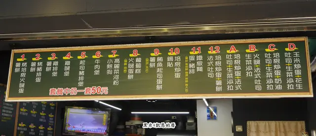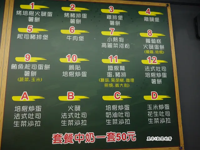 黑糖早餐吧一共有16種餐點組合加上中杯飲料,通通都是50元