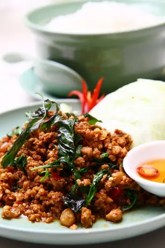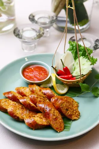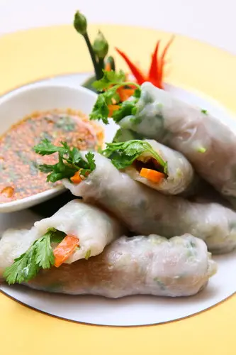 有點像是河粉皮的米皮裡卷著生菜和絞肉,皮比河粉更軟Q,沾著醬汁食用,會讓人想再來一卷喔~~