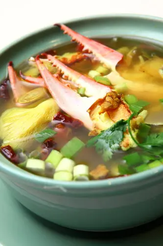 湯頭清鮮卻香氣十足的花蟹螫南薑湯,我好愛的酸香味,裡頭的菇類尤其美味~