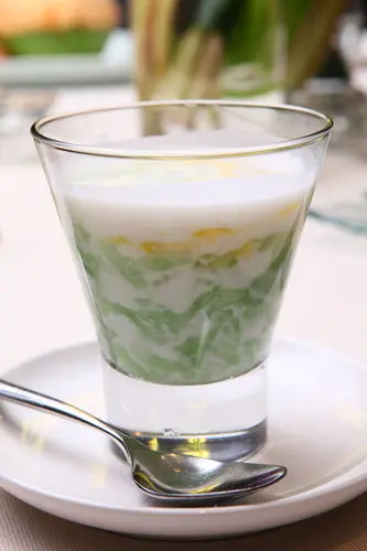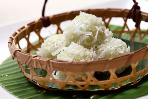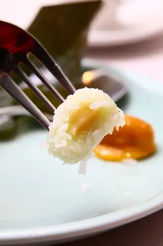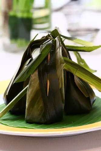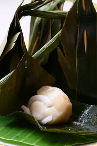香蘭葉包著的也是糯米做的甜點,加了新鮮椰肉一起蒸製而成,有著淡淡香蘭葉的香氣~