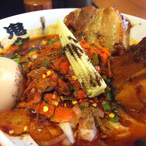 我的鬼金棒招牌,以豚骨及魚介高湯製作的特製辣麻味噌拉麵 -