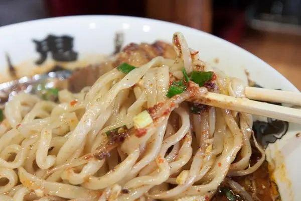 本來就帶著稠度的湯頭因此更加濃稠,也更能沾附於麵體,那辣帶來的刺激隨著麵條在口中跳動著。