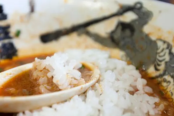 最後故意剩些湯汁倒入白飯食用麻辣湯泡飯,一種料理雙重享受 -