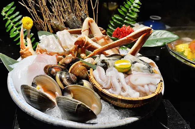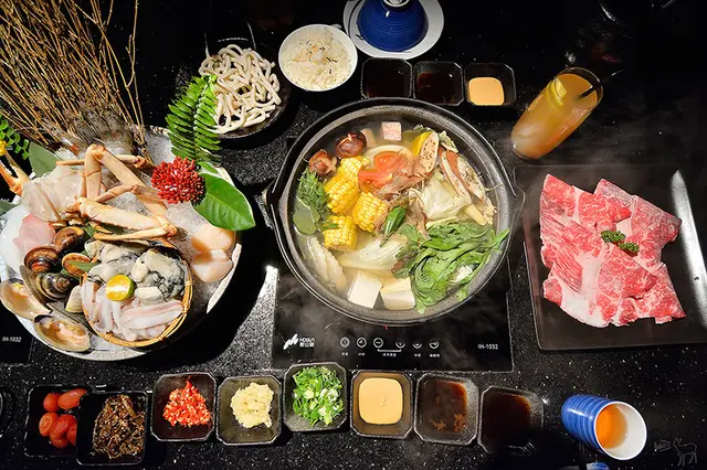 台北捷運國父紀念館站附近的,有看起來很澎湃的松葉蟹海鮮盤與澳洲和牛肉火鍋。