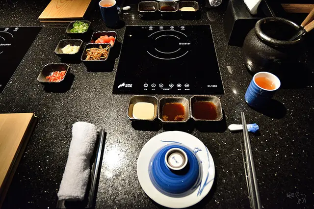 使用電子爐加熱的方式,會遞上熱毛巾、茉莉花茶與小菜等。