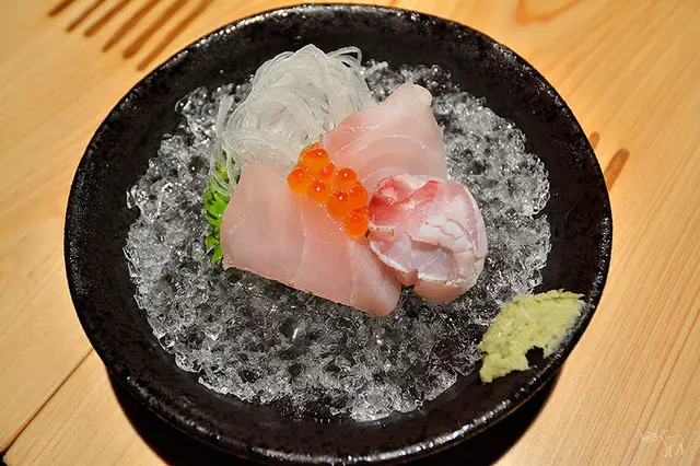 開胃菜(二選一):生魚片品項當日是旗魚、紅甘、長尾鳥魚,魚肉新鮮度適中,肉口感軟,而我個人則是喜歡多點油花,不過此盤多吃起來大多是由花較少的為主。