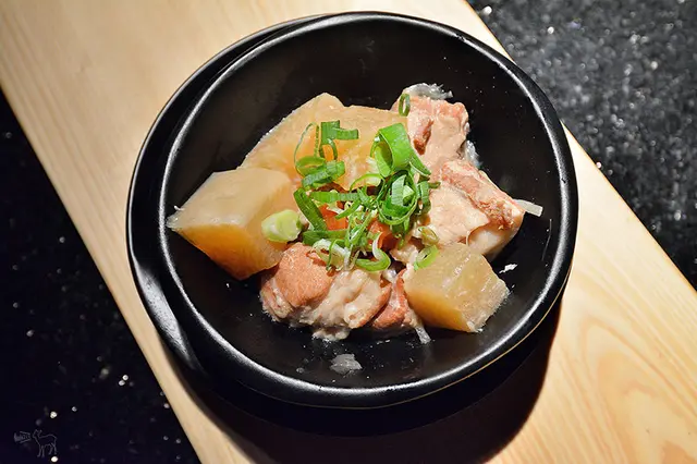 開胃菜(二選一):清酒燉豬肉的豬肉燉得很軟,有濃郁的酒香,一旁還有白蘿蔔與紅蘿蔔,我自己是覺得此道比起生魚片好一點。