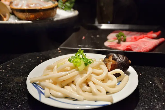 烏龍麵比起當日的白飯好一點,麵條雖然不是說很Q,但也有一點點微微Q軟的口感,我覺得配上胡麻醬沾醬也很合適。
