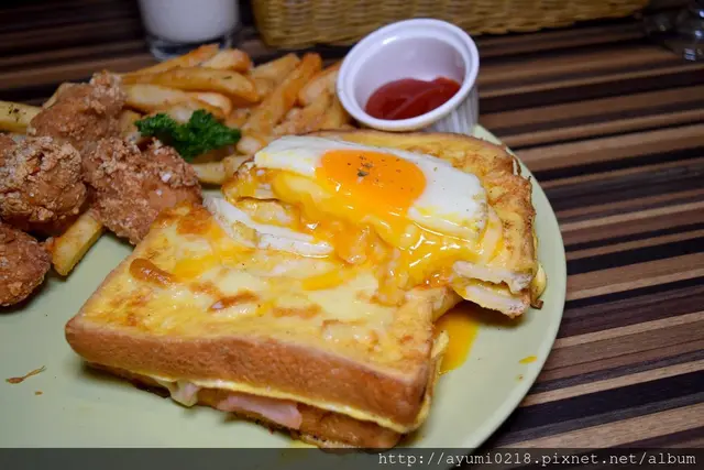 邪惡的完美太陽蛋.底下的法式吐司相當軟綿可口